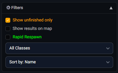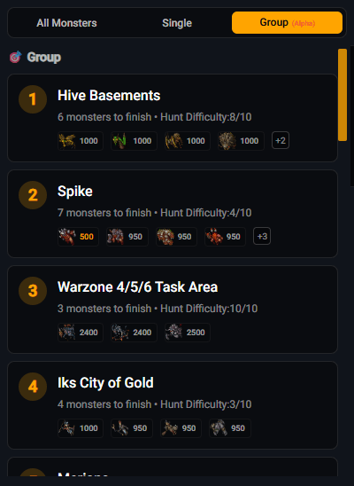 Once you fill in your Bestiary progress, the map will only display creatures you still need to complete, hiding everything else. Focus on what matters — no more clutter! Fine-tune your view with advanced filters: show only uncompleted entries, display results directly on the map, filter by creature class, sort by name, and switch between Solo, Group, or All creatures — plan your hunts exactly the way you want.